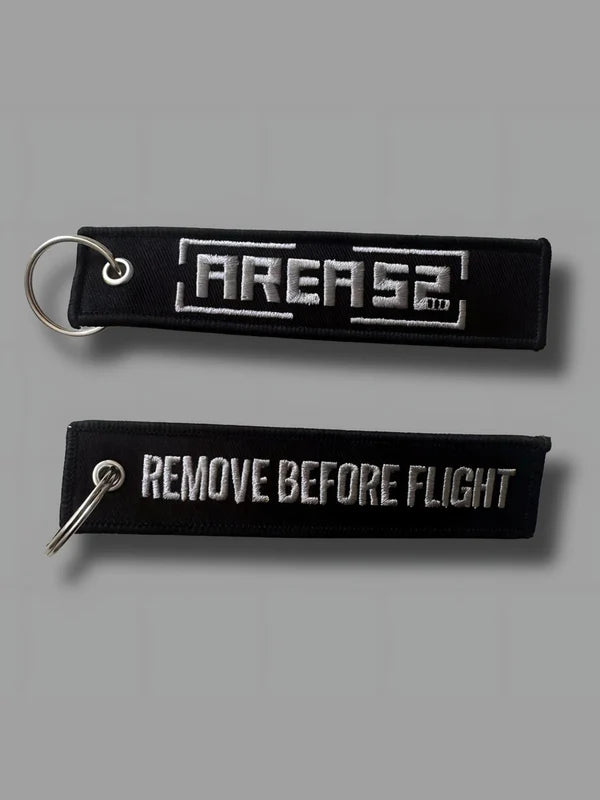 ACQUISTA ORAPortachiavi in tessuto nero ricamato AREA52 da un lato e Remove before flight dall'altro.
